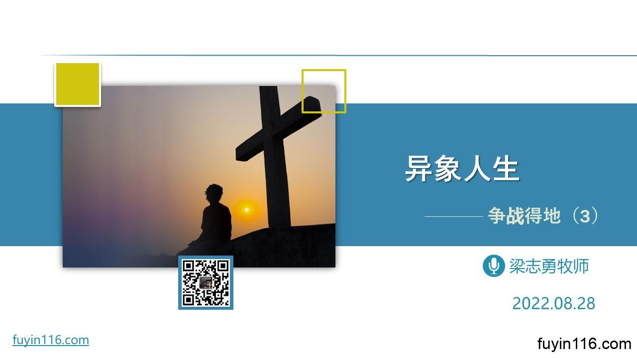 在8月28日,我们将进入《顺 服 基 督,争 战 得 地》系列的第03讲分享。