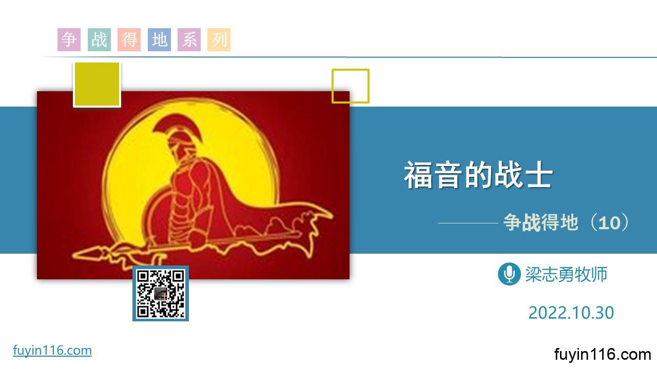在10月30日,我们将进入《争战得地》系列的第10讲分享: