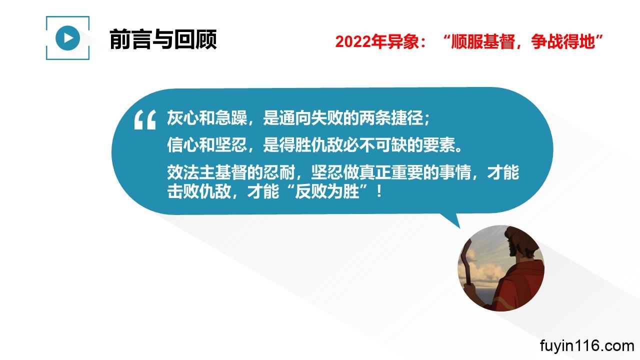 当我们拥有了“得胜的确据”,并知道要“坚忍得胜”之后,我们还必须知道一个重要的因素: