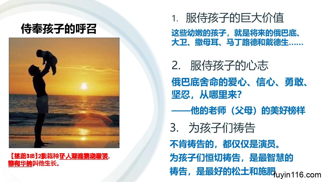 求主祝福我们这篇信息,让我们这些做家长的,真的看重对孩子的属灵教育,让他们自幼敬畏耶和华,让他们一生蒙福,一生得力,一生活在主的真理和爱中。