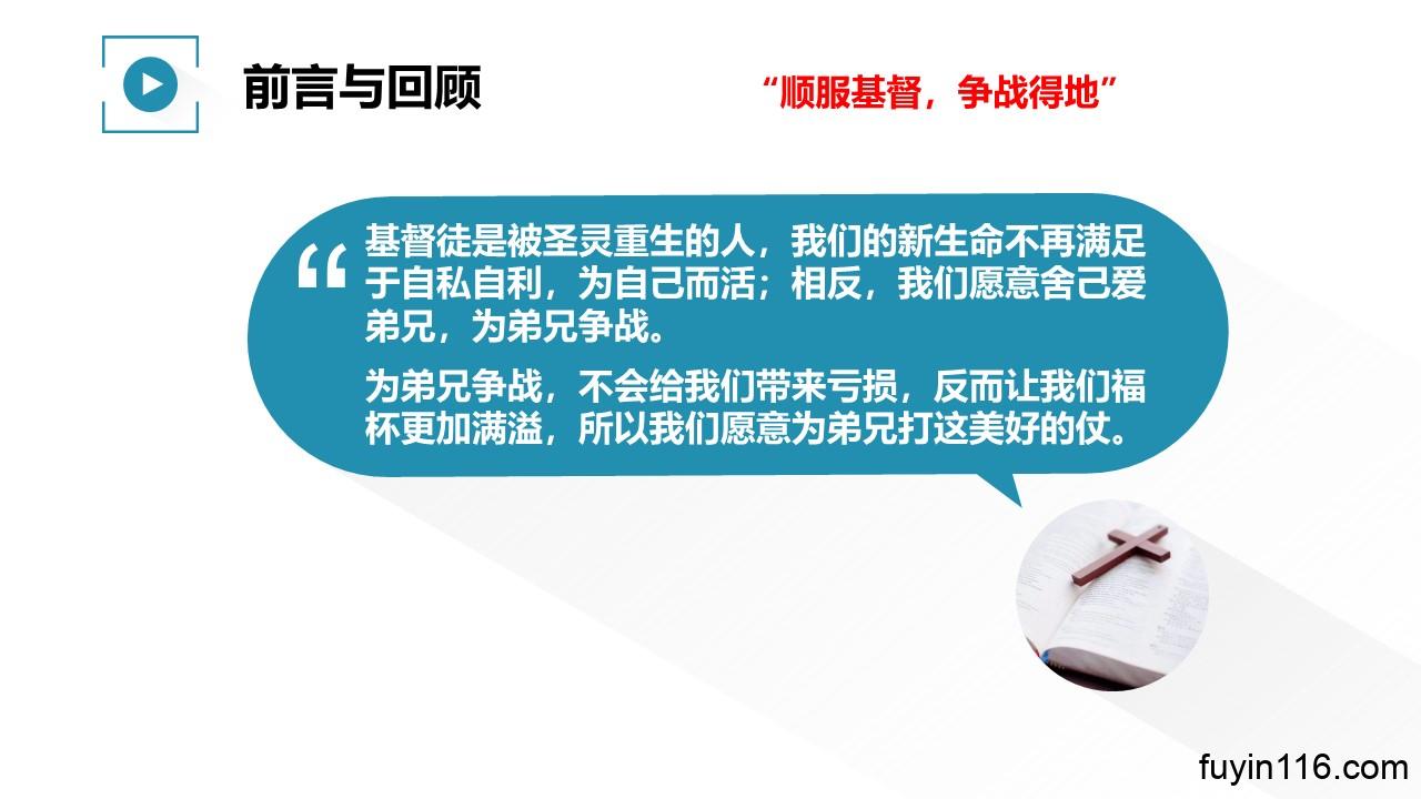 在4月9日,是复活节,我们继续《争战得地》系列的分享,第27讲: