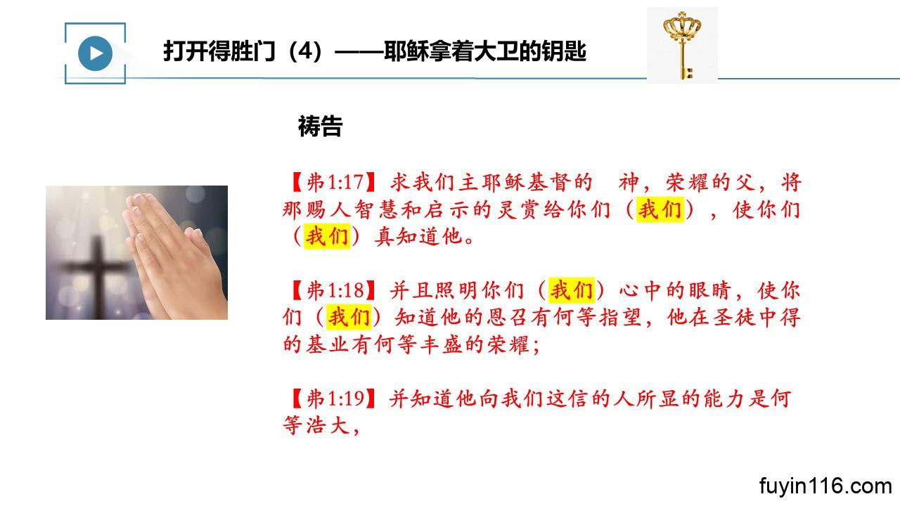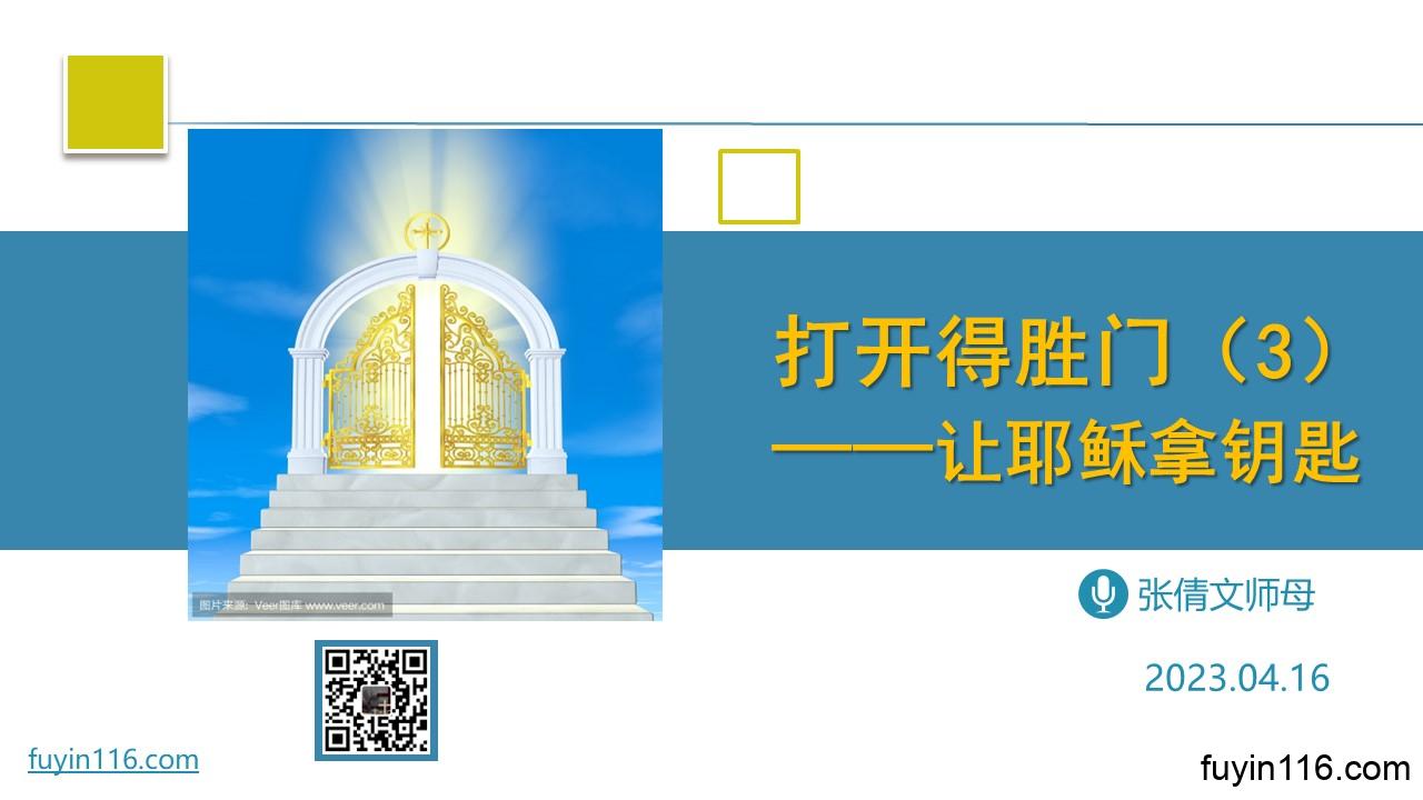 在4月16日,由倩文师母继续分享《打开得胜门》系列