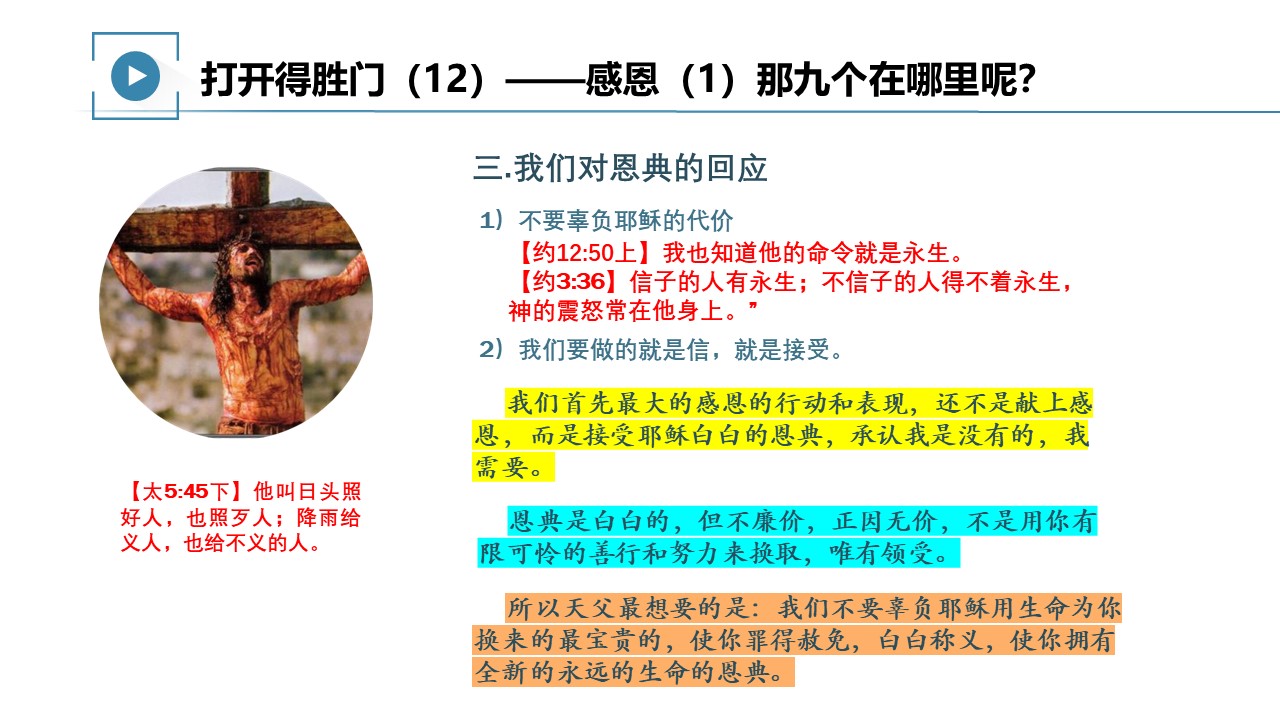 主耶稣曾经医好了十个大麻风病人,其中只有一人回来感恩。