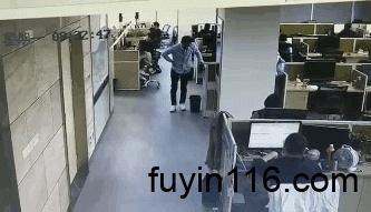 我在网上看到一个视频,一个年轻人在公司里面,扶着他的那个办公桌。