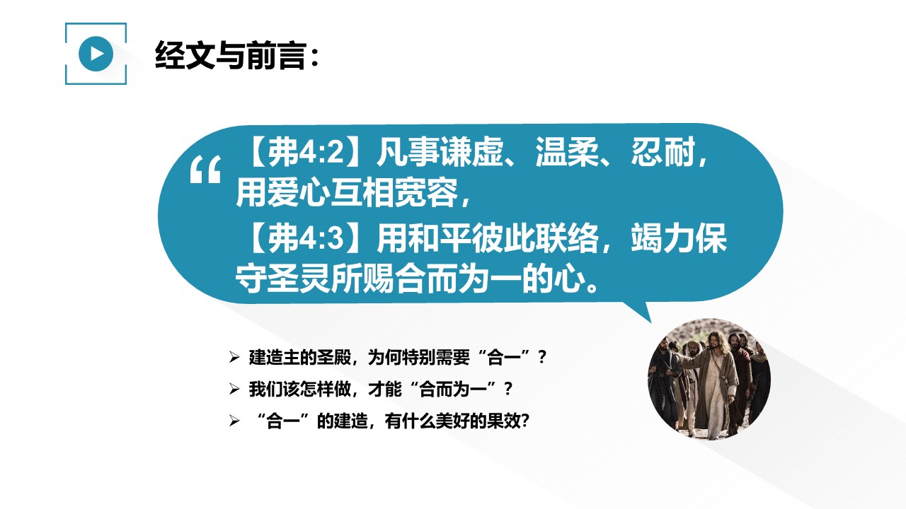 当建殿工人在《信心的飞跃》之后,我们再来定睛“合而为一”的真理。