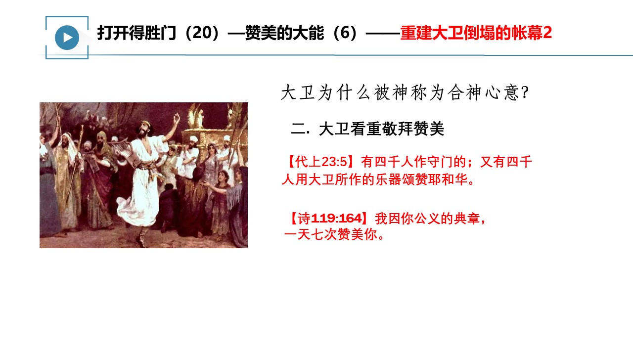 打开得胜门(20)重建大卫倒塌的帐幕(下)
