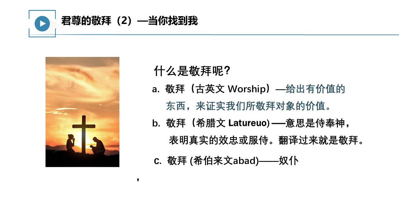 当上帝在基督里找到了我们,我们就成了敬拜上帝的人。