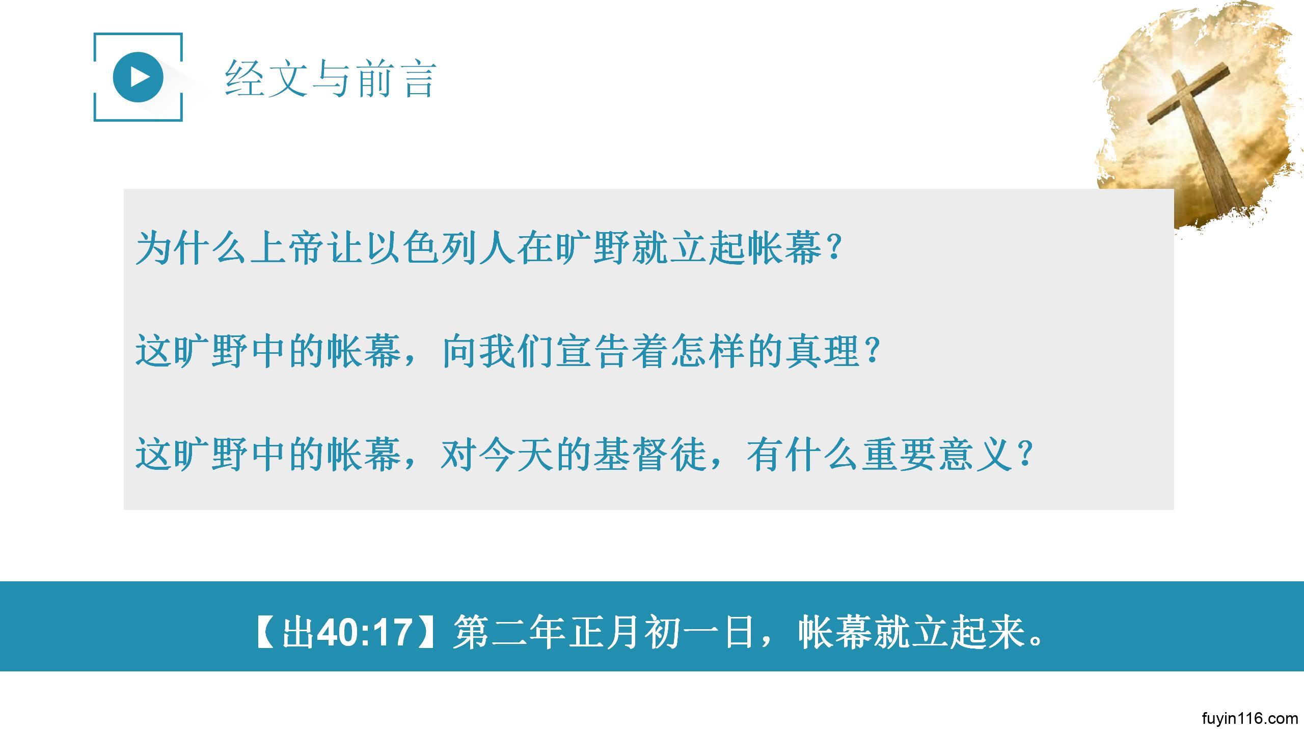 让我们从“旷野中的会幕”中学到宝贵的福音真理,正确认识世界,也更清楚福音在这个世界里的意义,基督徒在这个世界里里的使命。