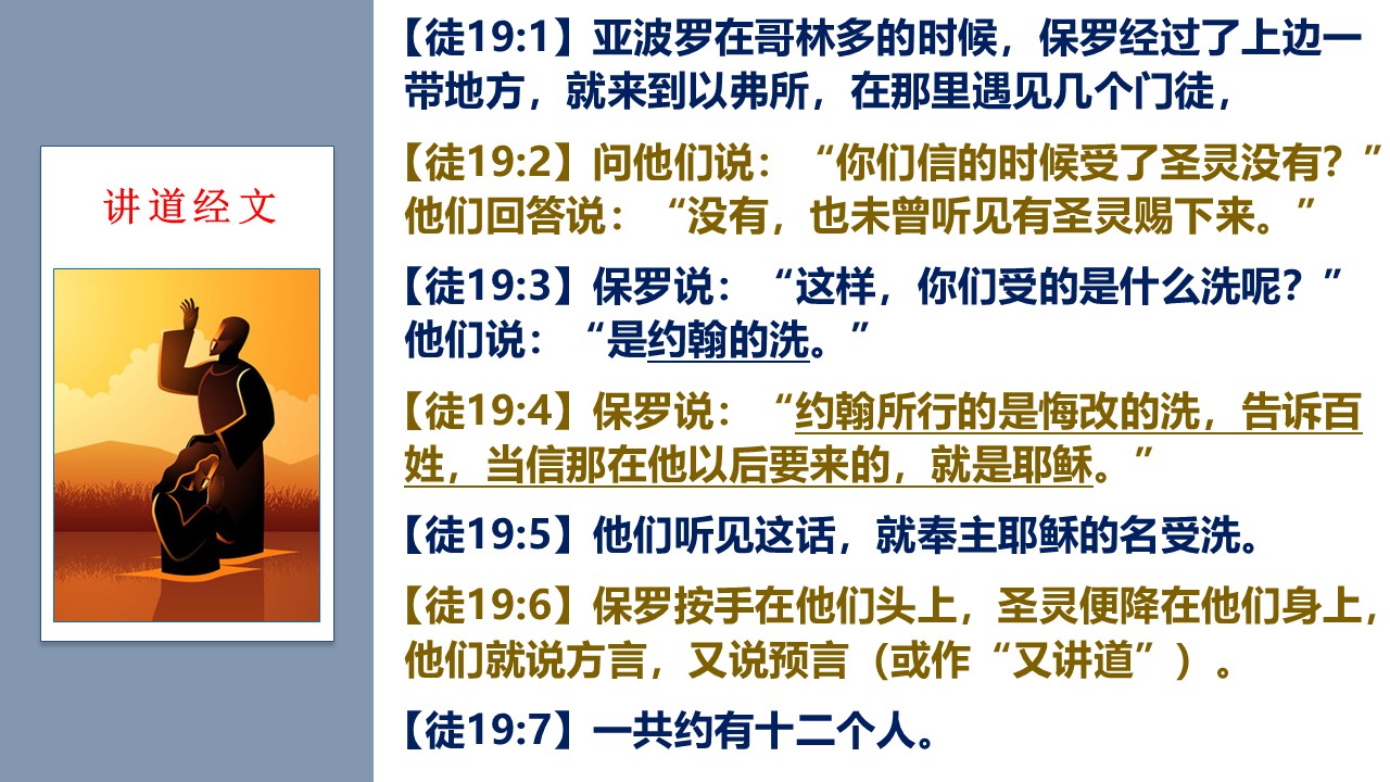保罗告诉以弗所的门徒,约翰的洗礼是不够的,必须奉耶稣的名受洗。