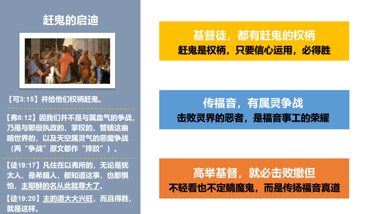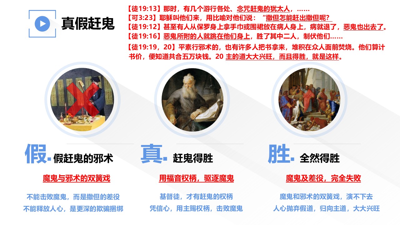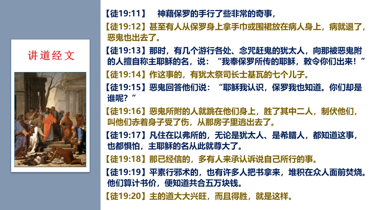 在使徒行传19章,讲述了保罗大能的赶鬼,以及士基瓦的七个儿子东施效颦,却被鬼戏弄的故事。
