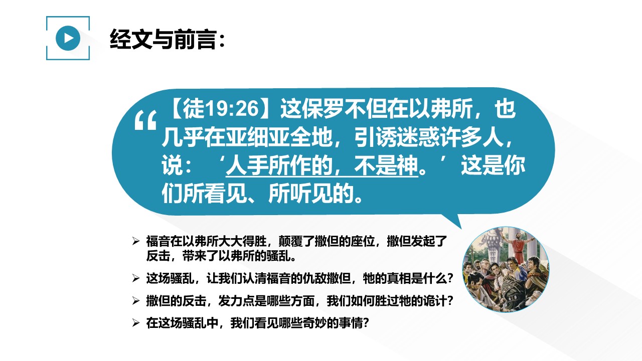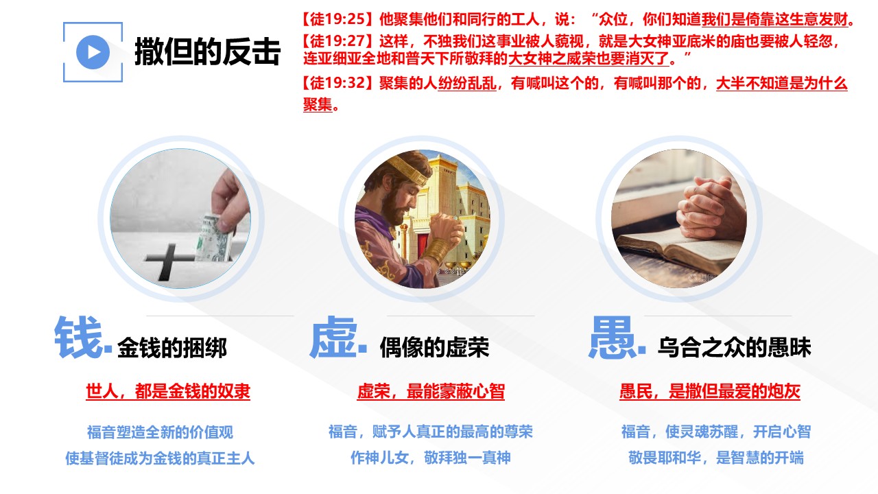 福音在以弗所大大得胜,颠覆了撒但的座位,撒但发起了反击,带来了以弗所的骚乱。