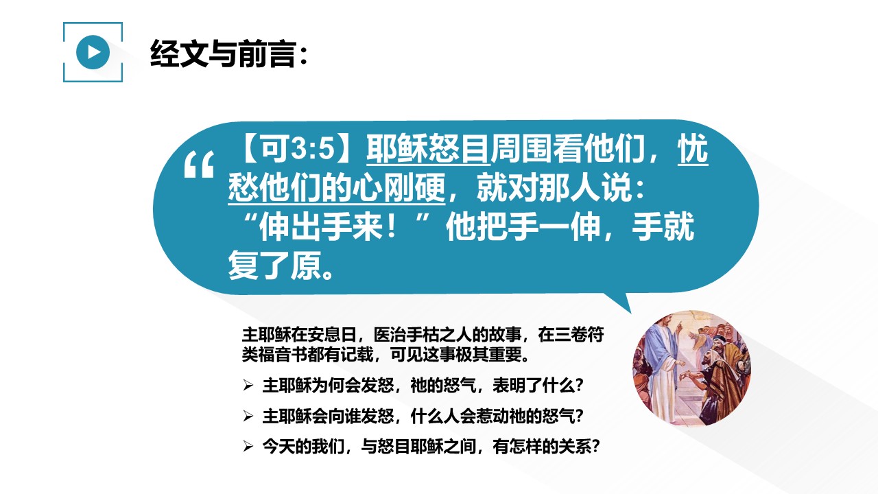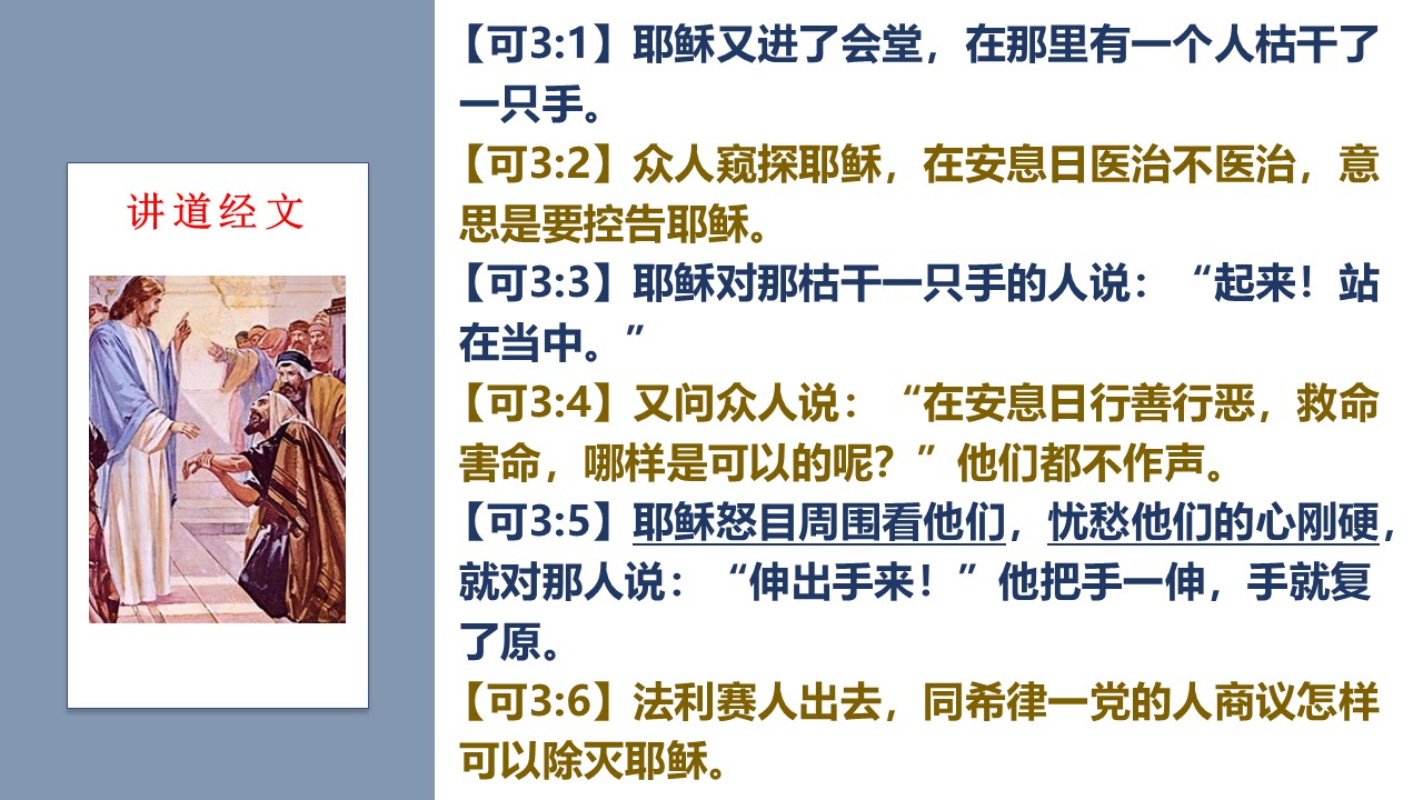 主耶稣在安息日,医治手枯之人的故事,在三卷符类福音书都有记载,可见这事极其重要。