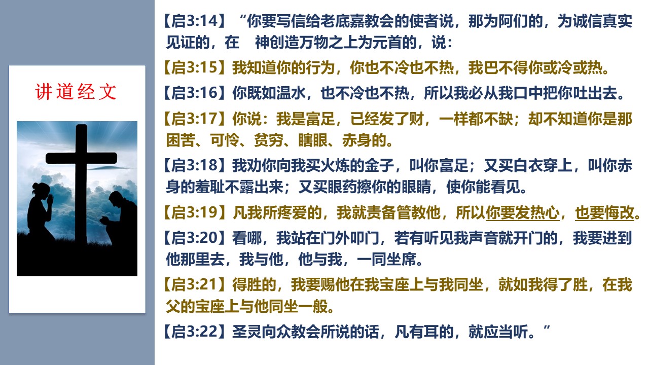 在《启示录》第三章,主基督对老底嘉教会说的话,对我们的家庭建造,也有重要的启发。