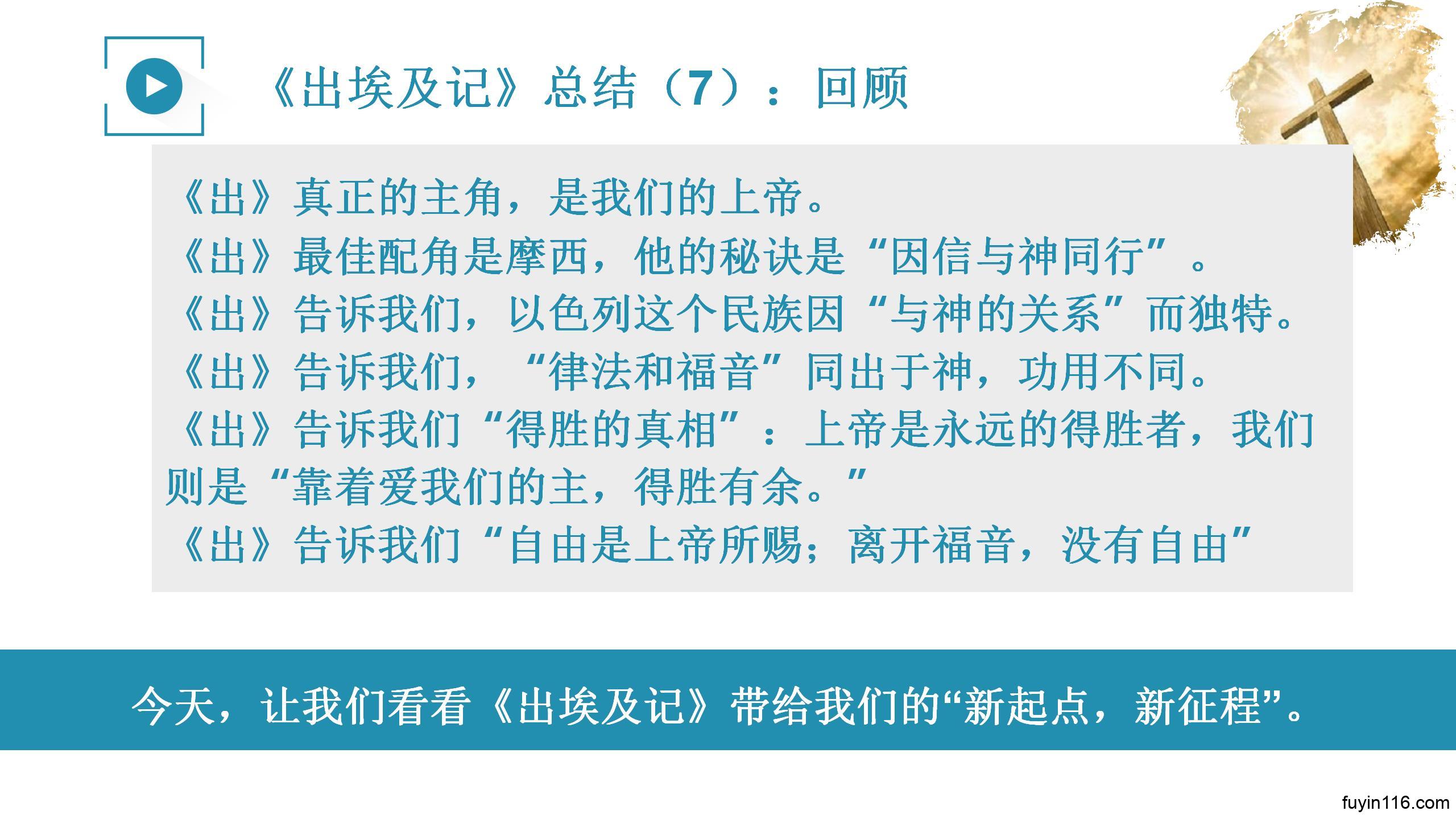 感谢你赐给我们《出埃及记》的真理,你的真理能使人得自由,你的真理也能使我们成圣。