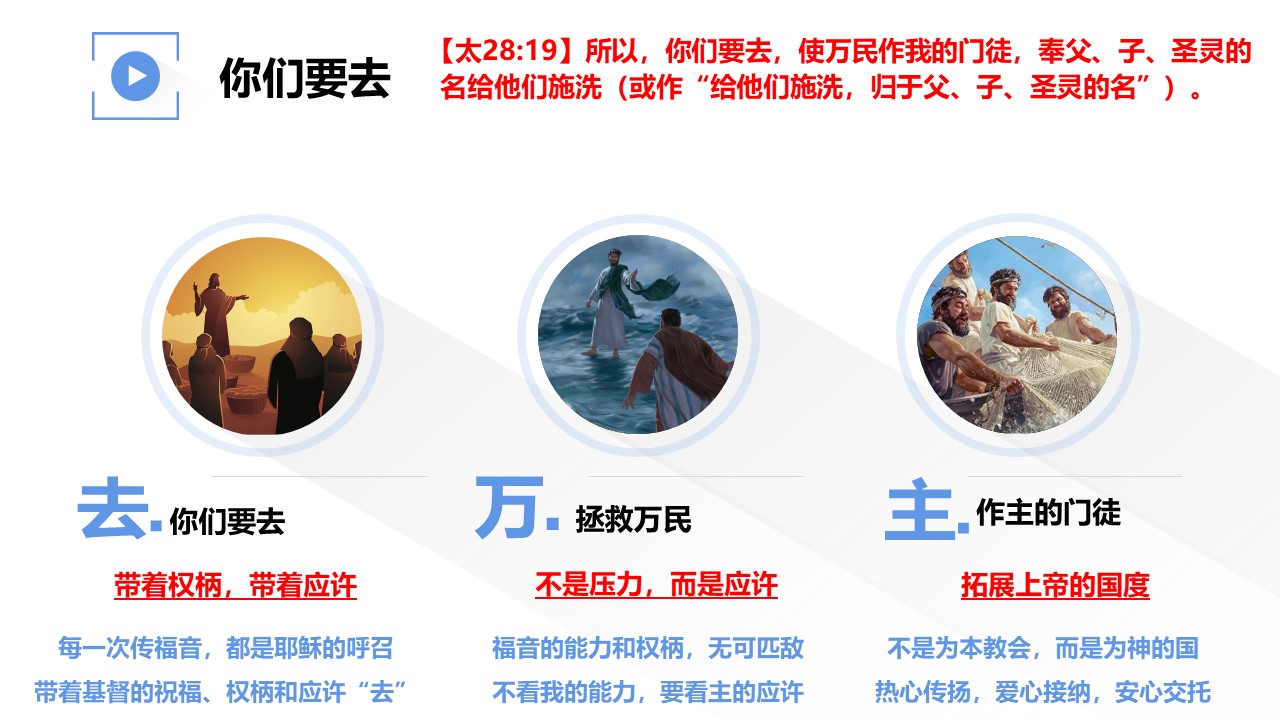主耶稣赐给我们的福音大使命,强调祂拥有天上地下所有的权柄。