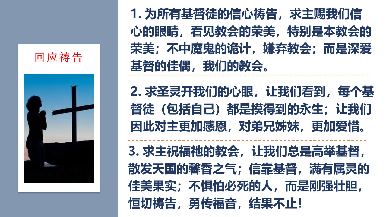 让我们更认识福音的大能,更注重与主同行、与神相交的生命建造,更勇敢为主作见证。