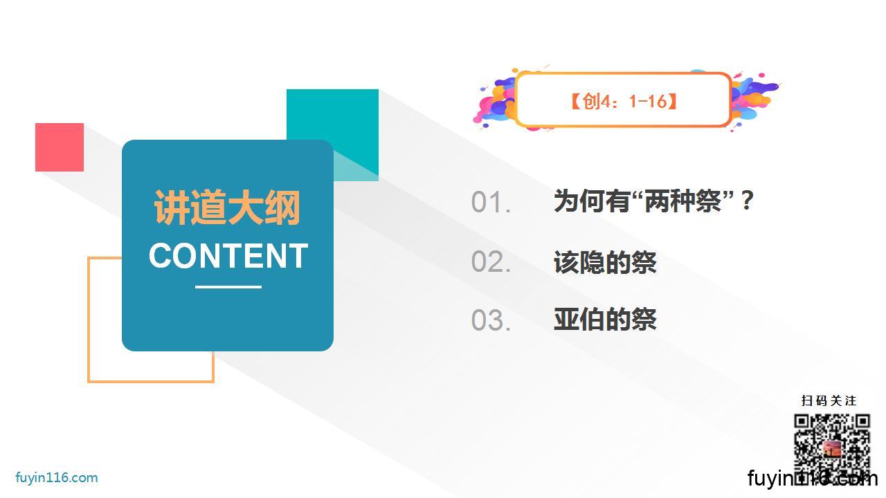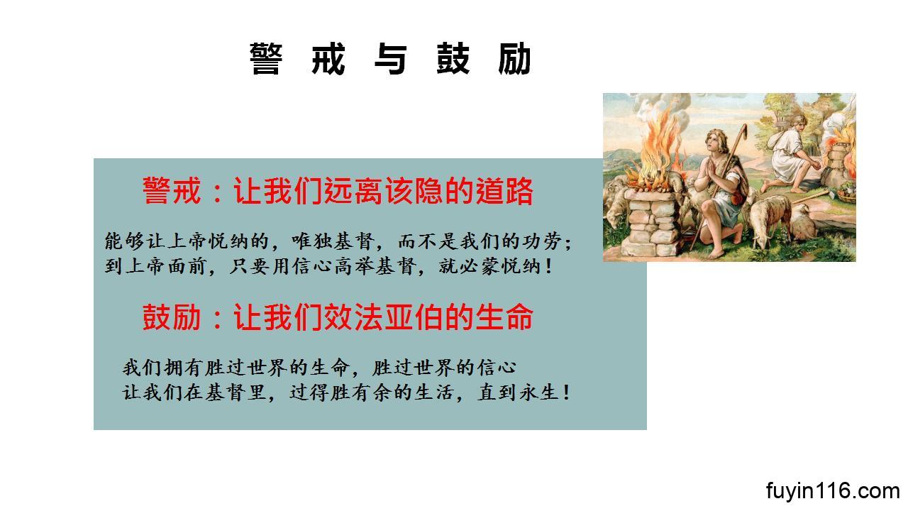 求主让我们认识“两种祭”的巨大区别,就更加感恩上帝对我们的爱和救赎,不走该隐的道路,在基督里过一个献祭的生活。