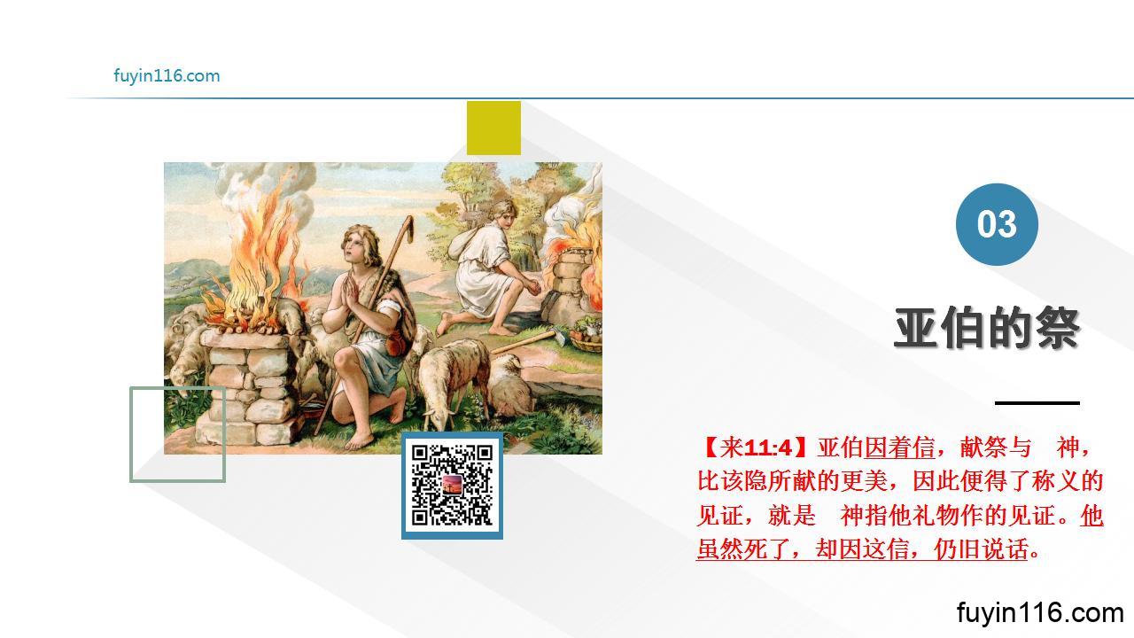 【创4:4】亚伯也将他羊群中头生的和羊的脂油献上。耶和华看中了亚伯和他的供物,