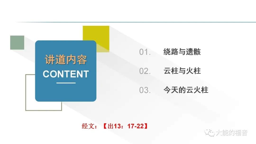 【出13:22】日间云柱,夜间火柱,总不离开百姓的面前。