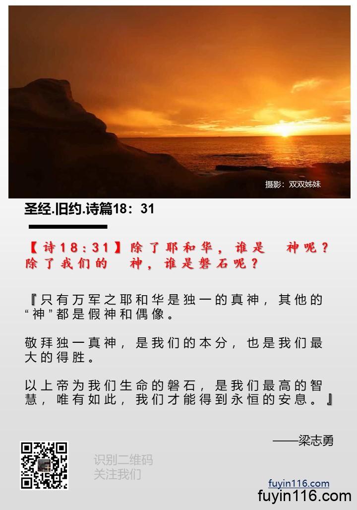 【诗18:31】除了耶和华,谁是 神呢?除了我们的 神,谁是磐石呢? 《谁是真正的得胜者?》 作者:梁志勇牧师 朗诵:徐辉姊妹 【诗18:31】除了耶和华,谁是 神呢?除了我们的 神,谁是磐石呢? 『只有万军之耶和华是独一的真神,其他的“神”都是假神和偶像。 敬拜独一真神,是我们的本分,也是我们最大的得胜。 以上帝为我们生命的磐石,是我们最高的智慧,唯有如此,我们才能得到永恒的安息。』 我们在天上的父, 感谢赞美你,你配得我们一切称颂和赞美,因为你是独一的真神,是掌管万有的至高的主,在你没有黑暗,没有邪恶,没有诡诈…