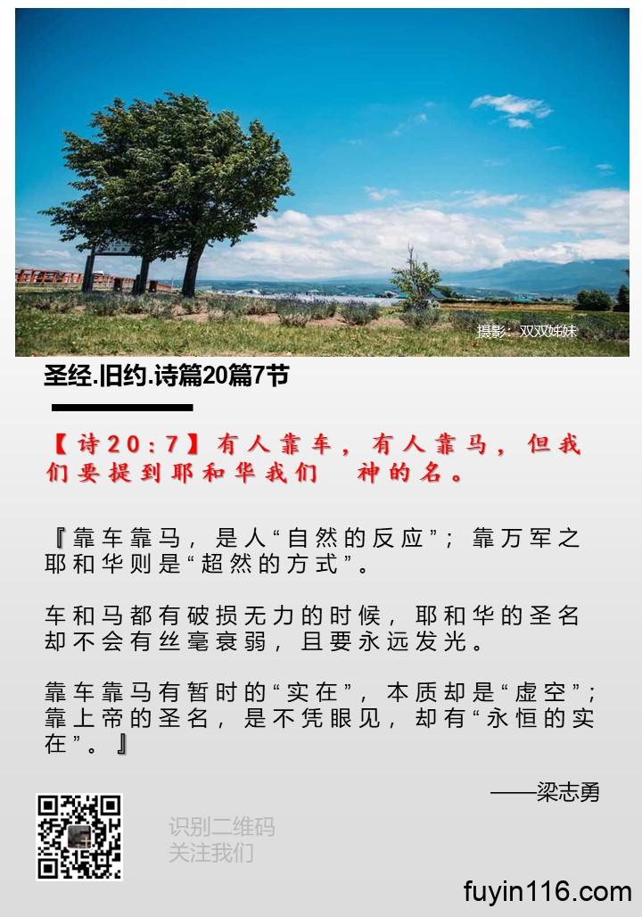 【诗20:7】有人靠车,有人靠马,但我们要提到耶和华我们 神的名。 《给高考学子的祝福》 作者:梁志勇牧师 朗诵:徐辉姊妹 【诗20:7】有人靠车,有人靠马,但我们要提到耶和华我们 神的名。 『靠车靠马,是人“自然的反应”;靠万军之耶和华则是“超然的方式”。 车和马都有破损无力的时候,耶和华的圣名却不会有丝毫衰弱,且要永远发光。 靠车靠马有暂时的“实在”,本质却是“虚空”;靠上帝的圣名,是不凭眼见,却有“永恒的实在”。』 我们在天上的父,感谢赞美你。 今天是高考的第一天,我们要在这里特别为高考学子们祷…