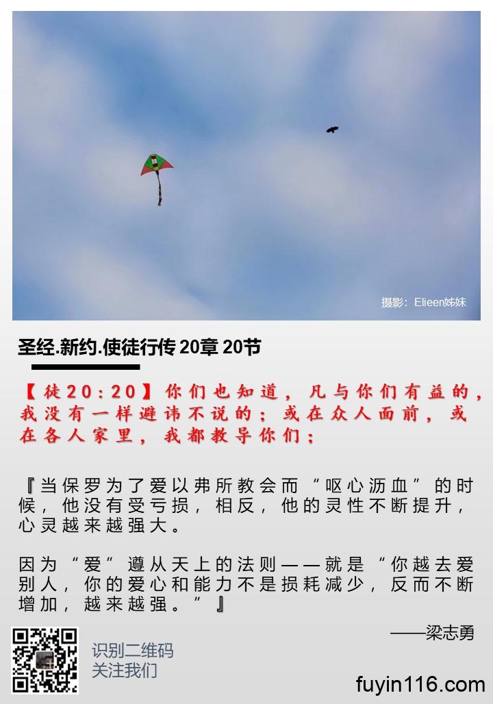 【徒20:20】你们也知道,凡与你们有益的,我没有一样避讳不说的;或在众人面前,或在各人家里,我都教导你们; 《让人得益处,自己不亏损》 作者:梁志勇牧师 朗诵:倩文师母 让人得益处,自己不亏损 (梁志勇) 【徒20:20】你们也知道,凡与你们有益的,我没有一样避讳不说的;或在众人面前,或在各人家里,我都教导你们; 在和以弗所长老的告别对话中,保罗向众人剖白他的牧者心肠,希望这些长老们也如保罗一样善待基督的群羊。 在这里,保罗说“凡与你们有益的,我没有一样避讳不说的”,这就是牧者心肠——保罗一心要让他…