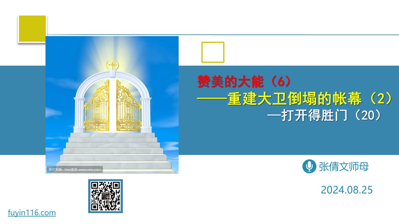 “大卫的帐幕”有何特别之处? “大卫的帐幕”有哪些重要的真理,需要我们学习? 我们该怎样“重建大卫倒塌的帐幕”? 愿上帝的祝福借着祂的真道,更多地临到每一个认真聆听的灵魂。 欢迎您收听: 《重建大卫倒塌的帐幕》 https://fuyinradio.org/tznw 您也可以点击下面的链接,重温之前的信息: 《打开得胜门系列》 ⚠️⚠️⚠️ 注意 ⚠️⚠️⚠️ 因为微信会有较严苛无理的屏蔽做法,所以我们网站的文章,经常会出现在微信里无法正常打开的情况。 遇到这种情况,大家不用慌,只要在微信对话或朋友圈,找…