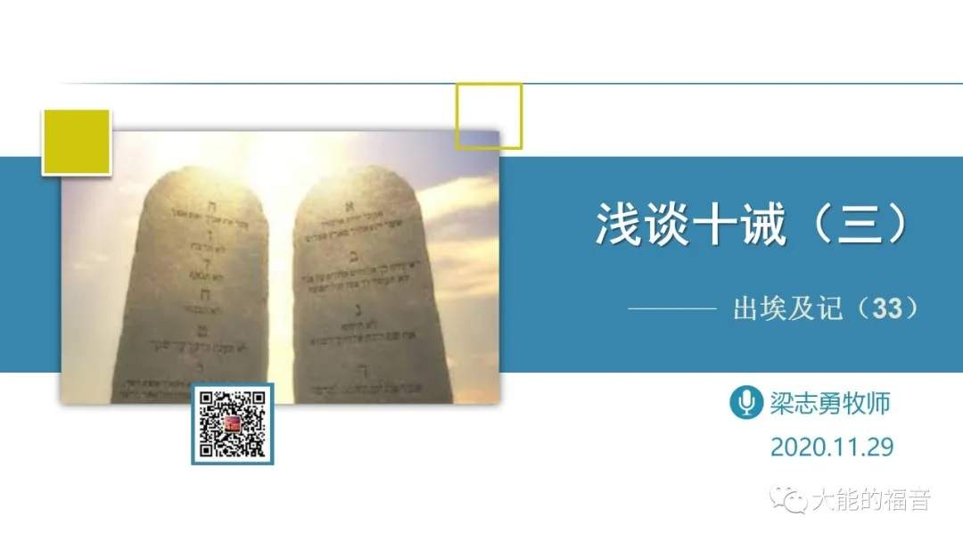 【出20:1】 神吩咐这一切的话,说: 【出20:2】“我是耶和华你的 神,曾将你从埃及地为奴之家领出来。 【出20:3】“除了我以外,你不可有别的神。 【出20:4】“不可为自己雕刻偶像;也不可作什么形像仿佛上天、下地和地底下、水中的百物。 【出20:5】不可跪拜那些像;也不可侍奉它,因为我耶和华你的 神,是忌邪的 神。恨我的,我必追讨他的罪,自父及子,直到三四代; 【出20:6】爱我、守我诫命的,我必向他们发慈爱,直到千代。 我们知道,《出埃及记》以19章为分水岭,因为在西乃山上,上帝与以色列人立约,也就是“西…