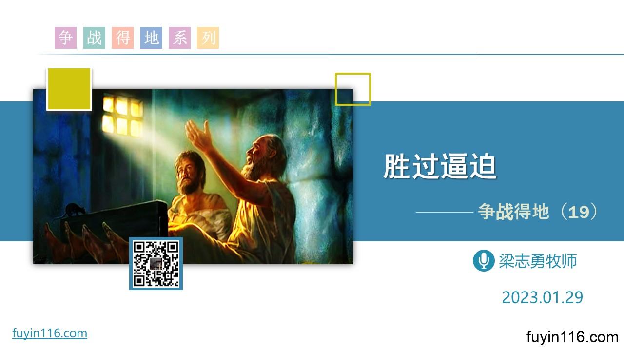 在1月29日,我们将继续《争战得地》系列的分享,第19讲: 《胜过逼迫》 这既是我们“争战得地”系列里的一次分享,也是有当下背景的一次特别分享。 什么是信仰逼迫,我们该怎样看待信仰逼迫? 到底谁在掌管逼迫? 上帝许可逼迫临到,祂的目的到底是什么? 愿上帝的祝福借着祂的真道,更多地临到每一个认真聆听的灵魂。 您也可以点击下面的链接,重温之前的信息: 《争战得地》系列 《正月初一日》 《新天新地、新圣城》 《圣诞专题:平安何处来?》 点击音频媒体前面的小三角“►”就可以播放: 视频整理完成,我们就会把讲道…