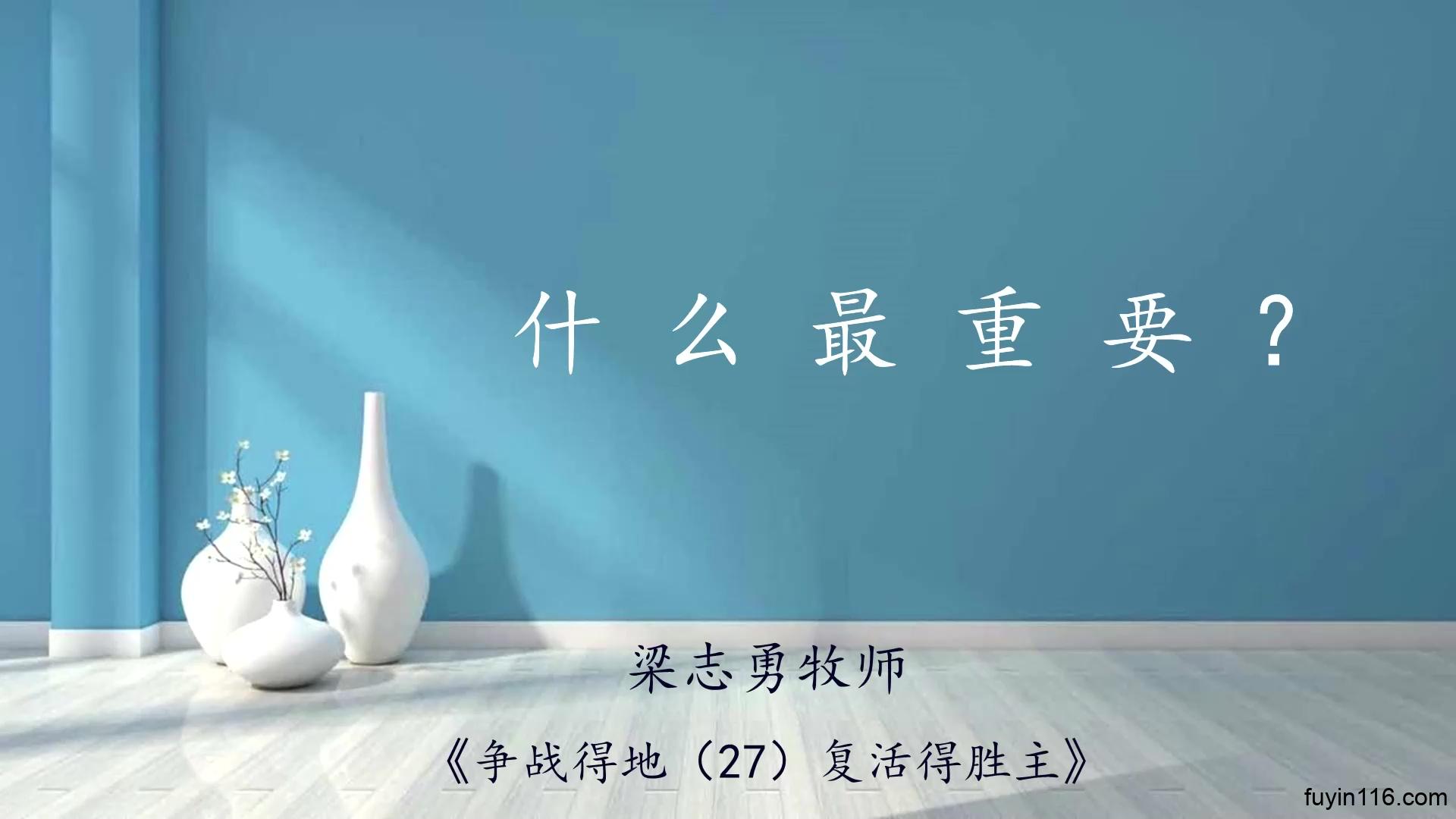 上帝重视的, 一定是重要的。 上帝轻视的, 必然是不重要的; 愿我们的价值观重塑: 主重视的,我不轻看! 主轻看的,我不重视! ——梁志勇《复活得胜主》 《争战得地(27)复活得胜主》 《讲道信息汇总(持续更新)》 《梁牧清风》汇编 《五饼二鱼》讲道剪辑 《争战得地》系列 《旧约里的福音》系列 《福音观影会》系列 《福音布道》系列 《路得记》系列(全) 《以利亚》系列(全) 《祭坛系列》讲道(全) 《因信称义》系列讲道(全) 《希伯…