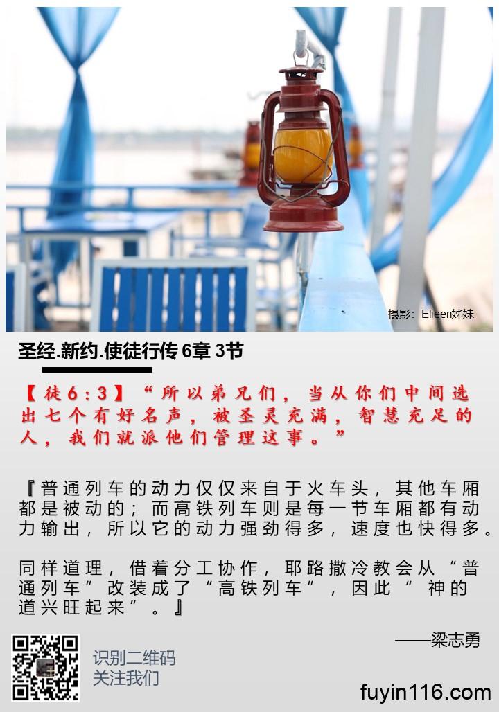 【徒6:3】“所以弟兄们,当从你们中间选出七个有好名声,被圣灵充满,智慧充足的人,我们就派他们管理这事。” 《分工协作,兴旺主道》 作者:梁志勇牧师 朗诵:倩文师母 分工协作,兴旺主道 (梁志勇) 【徒6:3】“所以弟兄们,当从你们中间选出七个有好名声,被圣灵充满,智慧充足的人,我们就派他们管理这事。” 当耶路撒冷的教会发展增长的时候,新的问题就跟着出现了:怎样同时把牧养工作做好,又在福音开拓上继续前进呢? 圣灵感动使徒,让他们做出了合理又明智的决定:设立执事,分工协作。当他们这样做,果效也是明显的、…