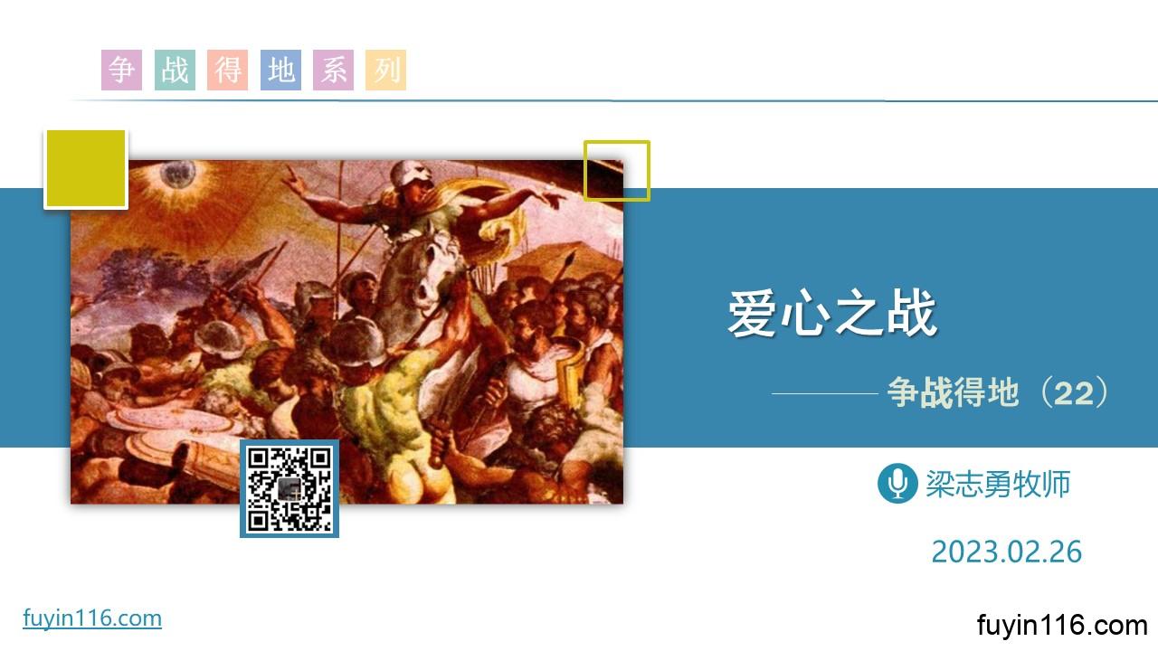 在2月26日,我们继续《争战得地》系列的分享,第22讲: 《爱心之战》   “基遍人归降以色列”这件历史事件,蕴含着哪些重要真理? 为什么我们称“基遍之战”为“爱心之战”? 基遍之战中,为何上帝行了“日头停止”的大神迹? 愿上帝的祝福借着祂的真道,更多地临到每一个认真聆听的灵魂。 欢迎您跟着我们的文章的提示,收听我们的录音: 《爱心之战》 您也可以点击下面的链接,重温之前的信息: 《争战得地》系列 《我宁愿有耶稣》 点击音频媒体前面的小三角“►”就可以播放 了: 视频整理完成,我们就会把讲道视频共享出来,…