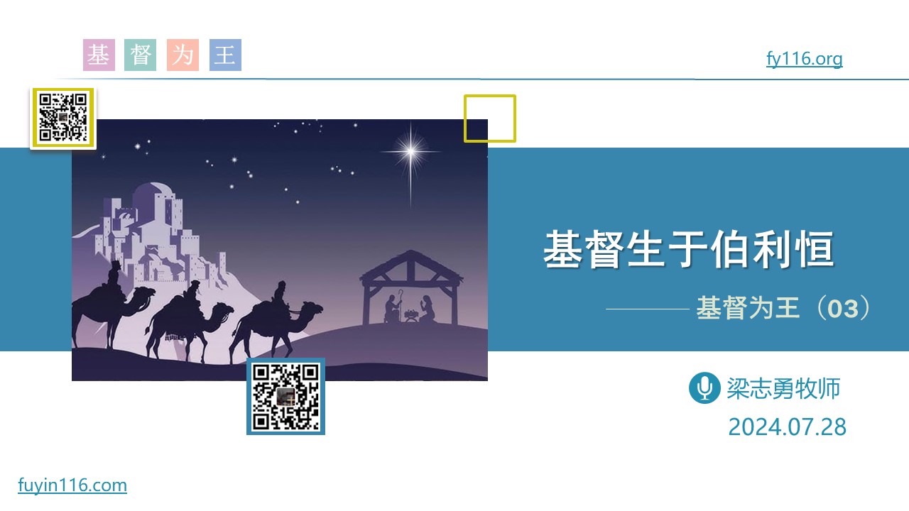 你知道主基督降生在什么地方吗? 伯利恒有何特殊之处,以至于基督耶稣要降生在这里? 主基督降生在伯利恒,与弥赛亚的应许有何关系? 主基督降生的伯利恒,与我们有何关系?   愿上帝的祝福借着祂的真道,更多地临到每一个认真聆听的灵魂。 欢迎您收听: 《基督生于伯利恒》 https://fuyinradio.org/the8   您也可以点击下面的链接,重温之前的信息: 《基督为王》   ⚠️⚠️⚠️ 注意 ⚠️⚠️⚠️ 因为微信会有较严苛无理的屏蔽做法,所以我们网站的…