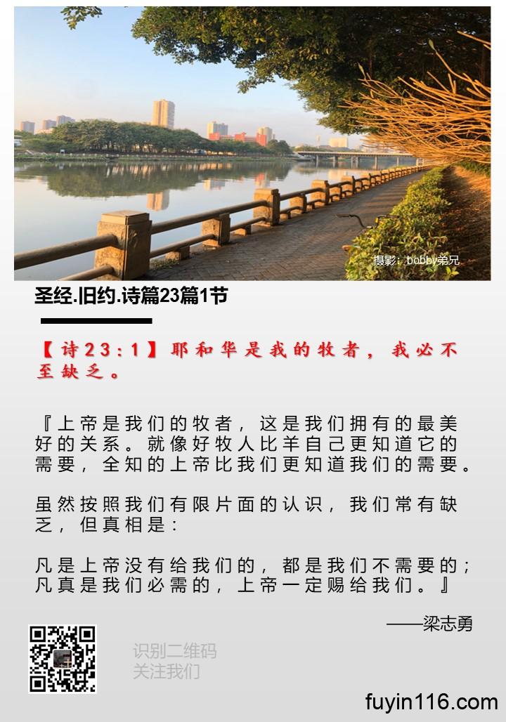 【诗23:1】耶和华是我的牧者,我必不至缺乏。 《最美好的关系是什么?》 作者:梁志勇牧师 朗诵:徐辉姊妹 【诗23:1】耶和华是我的牧者,我必不至缺乏。 『上帝是我们的牧者,这是我们拥有的最美好的关系。 就像好牧人比羊自己更知道它的需要,全知的上帝比我们更知道我们的需要。 虽然按照我们有限片面的认识,我们常有缺乏,但真相是: 凡是上帝没有给我们的,都是我们不需要的;凡真是我们必需的,上帝一定赐给我们。』 我们在天上的父,感谢赞美你 感谢你把《圣经》赐给我们,让我们明白很多真理,这些真理是世界里没有的,这些真理要发…
