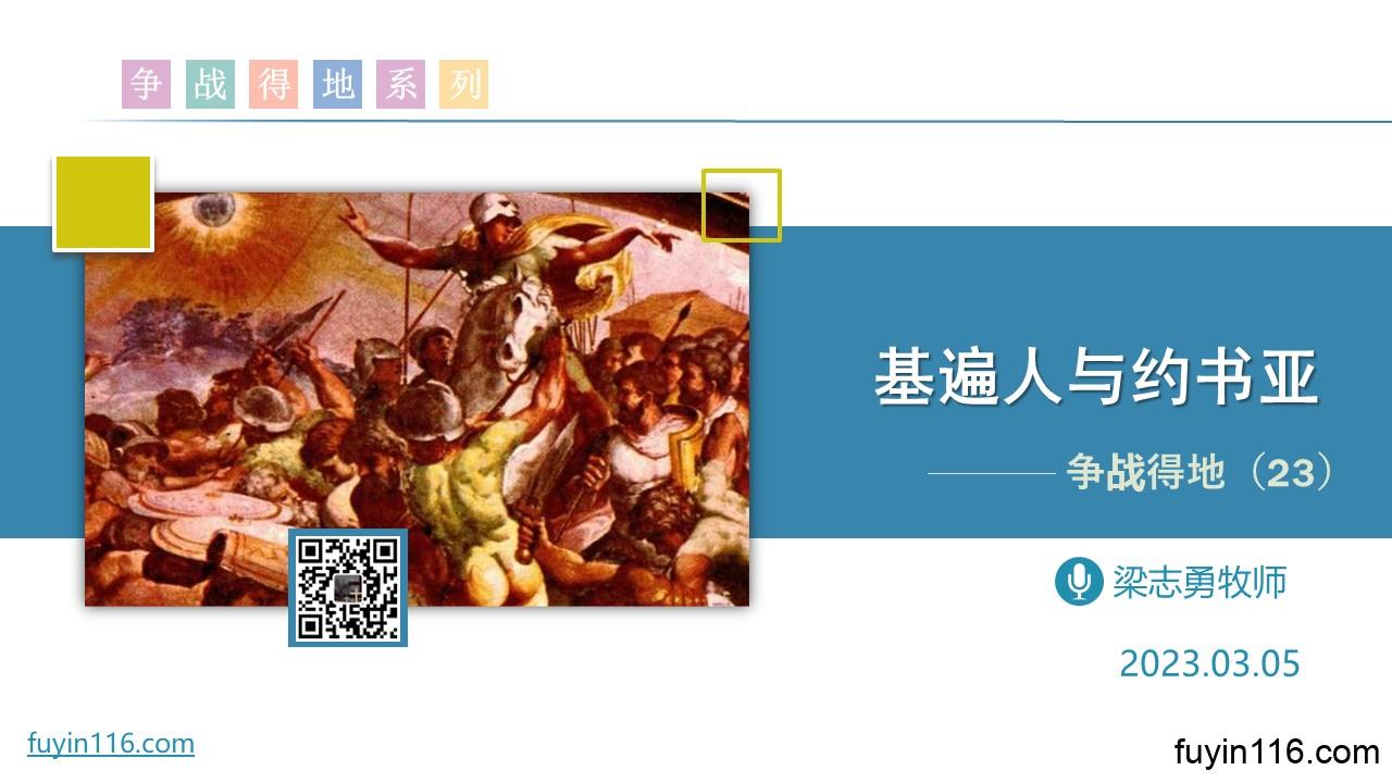 在3月5日,我们继续《争战得地》系列的分享,第23讲: 《基遍人和约书亚》 我们继续聚焦在“基遍之战”上,看主给我们哪些重要的真理启示。 基遍之战,向我们还启示了哪些重要的福音真理? 约书亚对基遍人的拯救,启示了哪些“爱的真谛”? 基遍人和约书亚,给今天的我们,有什么重要的提醒? 愿上帝的祝福借着祂的真道,更多地临到每一个认真聆听的灵魂。 欢迎您跟着我们的文章的提示,收听我们的录音: 《基遍人和约书亚》 您也可以点击下面的链接,重温之前的信息: 《争战得地》系列 《正月初一日》 《新天新地、新圣城》 《圣诞专题:平…