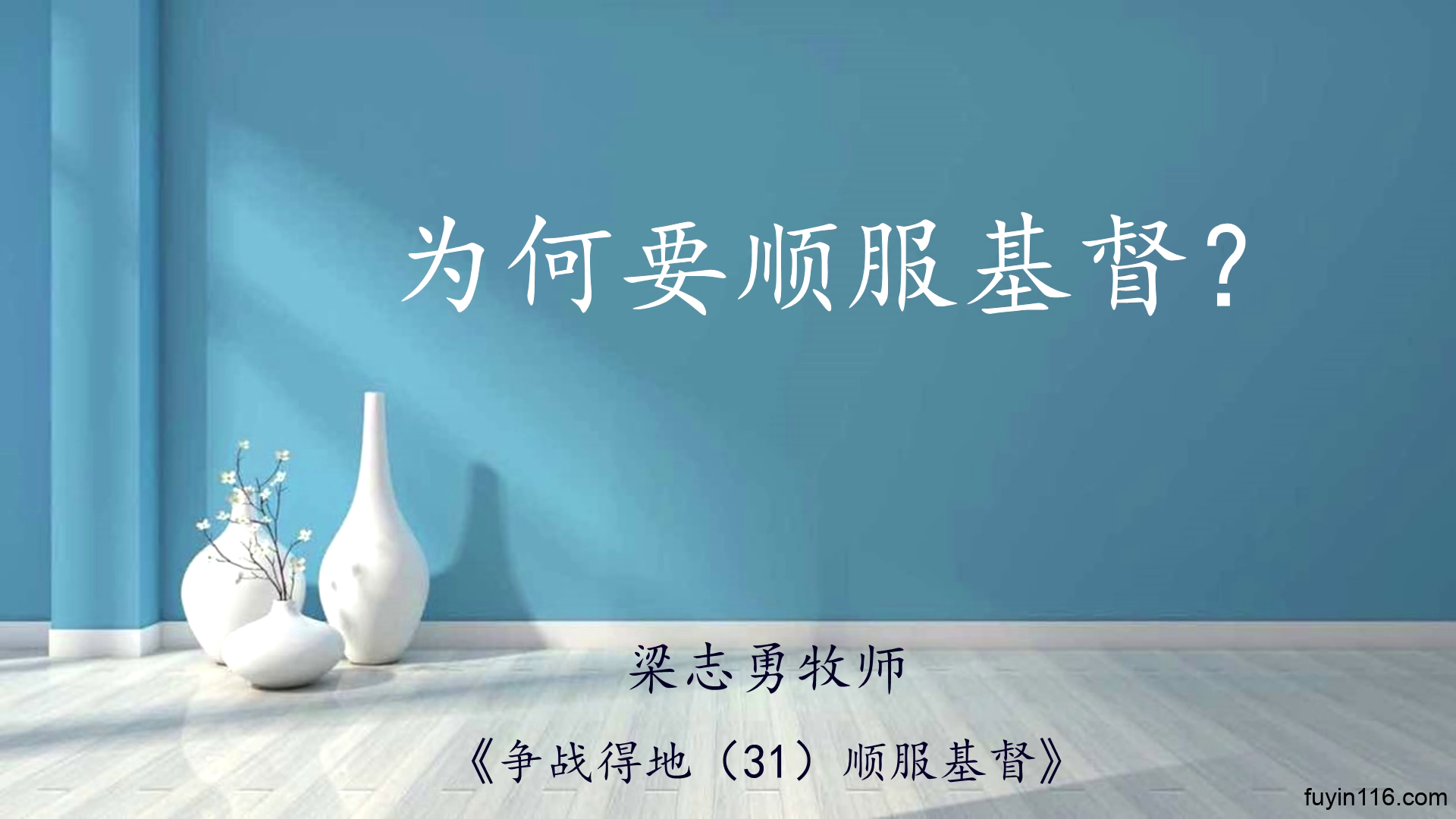 顺服基督的第一因, 是因主对我们的爱; 因此,祂深愿我们, 总是住在祂的爱里。 当我们顺服基督, 就住在祂的艾莉,刚强有力; 当我们不顺服基祂, 就离开祂的爱,软弱无力。 ——梁志勇《争战得地(31)顺服基督》 我们相信,你看到我们这篇讲道剪辑《为何要顺服基督》,绝不是偶然,而是上帝精心安排的结果。 在看到我们这篇文章之前,也许你常常感到很深的无力感,对人生的方向也常常感到迷茫。 上帝知道你的苦境,所以要用这篇文章来搭救你。 你虽然不认识上帝,但祂却顾念你,要帮助你成为一个“真正强有力的…